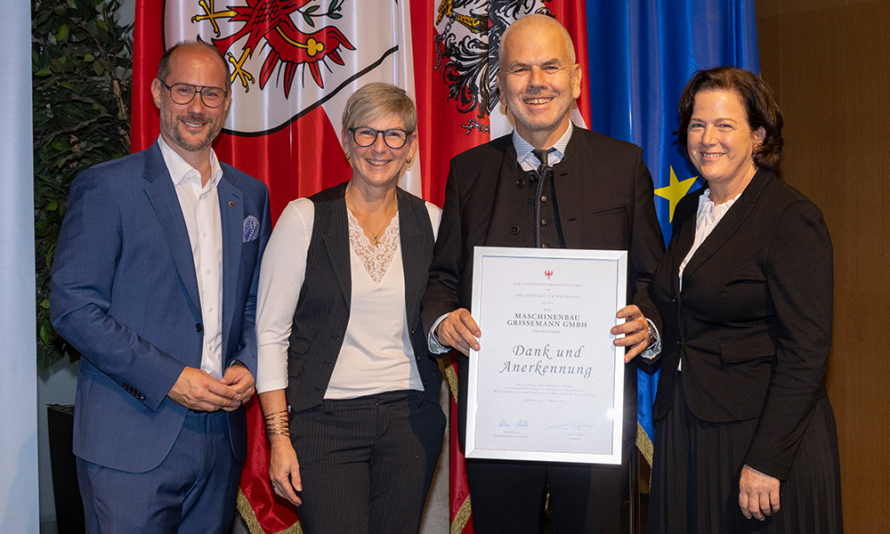 Wir freuen uns sehr über eine besondere Ehrung: Maschinenbau Grissemann wurde vom Land Tirol als „ausgezeichneter Traditionsbetrieb“ geehrt.